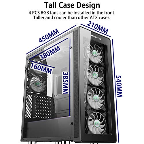 MUSETEX 8 PCS RGB Fans ATX Mid-Tower Case with 2 USB 3.0, Computer PC Gaming Case with Remote Control, Tempered Glass Cooling System/Airflow/Cable Management (T400-S8)