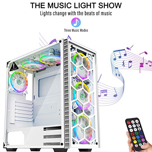 MUSETEX USB 3.0, 6 ARGB Fans ATX Mid-Tower case with Voice Remote Control, 2 Tempered Glass Panels PC Gaming Case, White case Support E-ATX ?903MS6W?