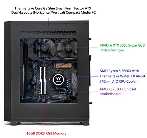 Thermaltake Lcgs Core G36 AIO Liquid Cooled CPU Gaming PC (AMD Ryzen 5 3600X 3.8GHz, DDR4 3200MHz 16GB RGB Memory, NVIDIA GeForce RTX 2060 Super 8GB, Gen4 M.2 1TB, WiFi, Win 10 Pro) G3BK-X570-AG3-LCS