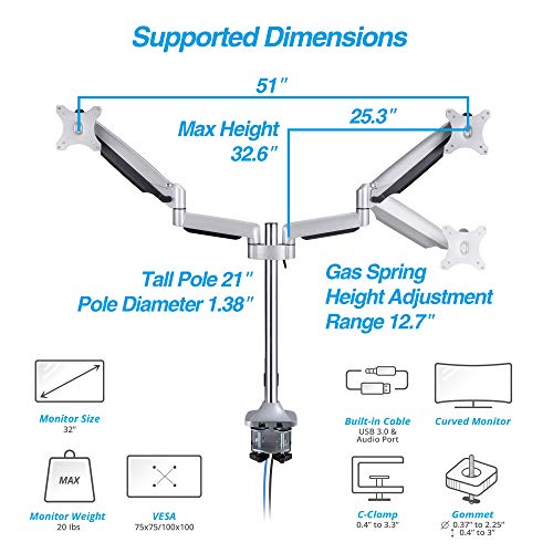 0 Response to "AVLT Dual 13"-32" Monitor Arm Desk Mount fits Two Flat/Curved Monitor Full Motion Height Swivel Tilt Rotation Adjustable Monitor Arm - Extra Tall Pole/VESA/C-Clamp/Grommet/Cable Management"