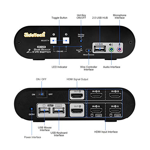 0 Response to "JideTech HDMI KVM Switch 2 Port Dual Monitor Extended Display with USB 2.0 Hub and Audio Microphone Output, Support 4K@30Hz Resolution,Wireless Keyboard & Mouse and Hotkey Switch"