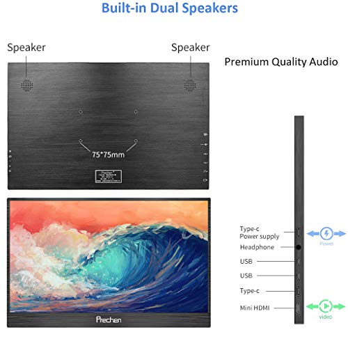 Portable Monitor, 15.6 Inch Portable Monitor Full HD 1080P IPS USB Type-C Computer Display with HDMI Type C USB Input Gaming Monitor External Secondary Display for PC Mac Laptop Phone Xbox PS4 PS3